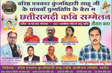 खरौद में 5 मई को ‘छत्तीसगढ़ी कवि सम्मेलन वरिष्ठ पत्रकार स्व. कुंजबिहारी साहू को दी जाएगी काव्यांजलि