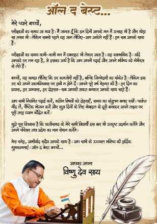 मुख्यमंत्री विष्णु देव साय का छात्रों को संदेश: ‘ऑल द बेस्ट, प्यारे बच्चों’, डरें नहीं, डटकर दें परीक्षा