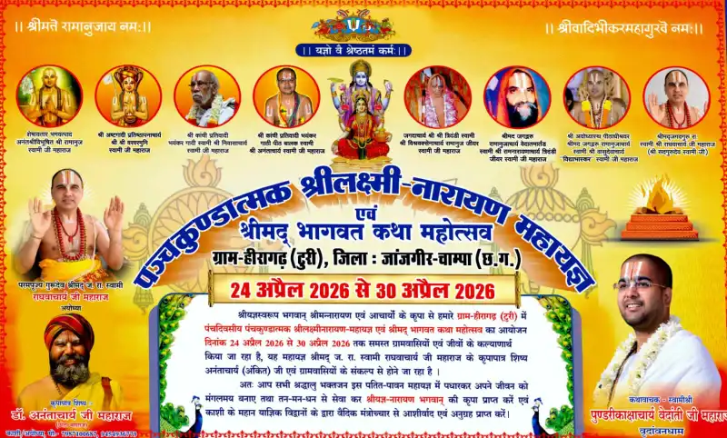हीरागढ़ में भक्ति का समागम: 24 अप्रैल से शुरू होगा श्रीलक्ष्मी-नारायण महायज्ञ और श्रीमद् भागवत कथा महोत्सव