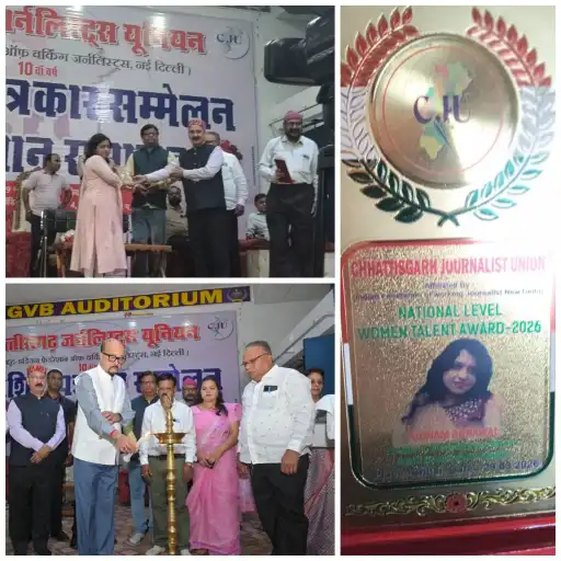 जांजगीर-चांपा। छत्तीसगढ़ जर्नलिस्ट यूनियन द्वारा भिलाई के एस.एन.जी. ऑडिटोरियम (सेक्टर-4) में आयोजित प्रादेशिक पत्रकार सम्मेलन और सम्मान समारोह में जांजगीर-चांपा जिले का मान बढ़ा है। मारवाड़ी युवा मंच जागृति शाखा नैला की अध्यक्ष श्रीमती पूनम अग्रवाल को उनके उत्कृष्ट सामाजिक और जनसेवा कार्यों के लिए ‘राष्ट्रीय नारी शक्ति सम्मान 2026’ से सम्मानित किया गया है।