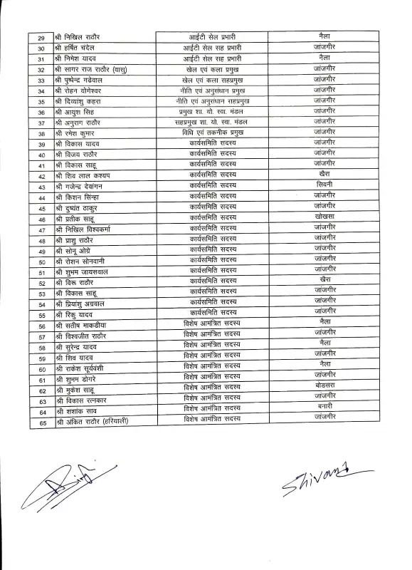 जांजगीर-नगर: भाजयुमो मंडल कार्यकारिणी की घोषणा, देखें पदाधिकारियों और सदस्यों की पूरी लिस्ट