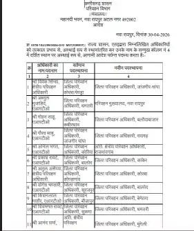 जारी सूची में कई जिलों के प्रभार बदले गए हैं। प्रमुख रूप से अतुल असैय्या को कोरबा, मोहन साहू को बलौदाबाजार, आनंद शर्मा को मुंगेली और प्रकाश रावटे को कांकेर का जिला परिवहन अधिकारी बनाया गया है। वहीं, अब्दुल मुजाहिद को परिवहन मुख्यालय, नवा रायपुर भेजा गया है।