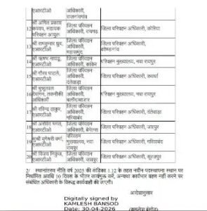 तबादला सूची में जांजगीर-चांपा जिले के लिए महत्वपूर्ण बदलाव हुआ है। जारी आदेश के अनुसार:
